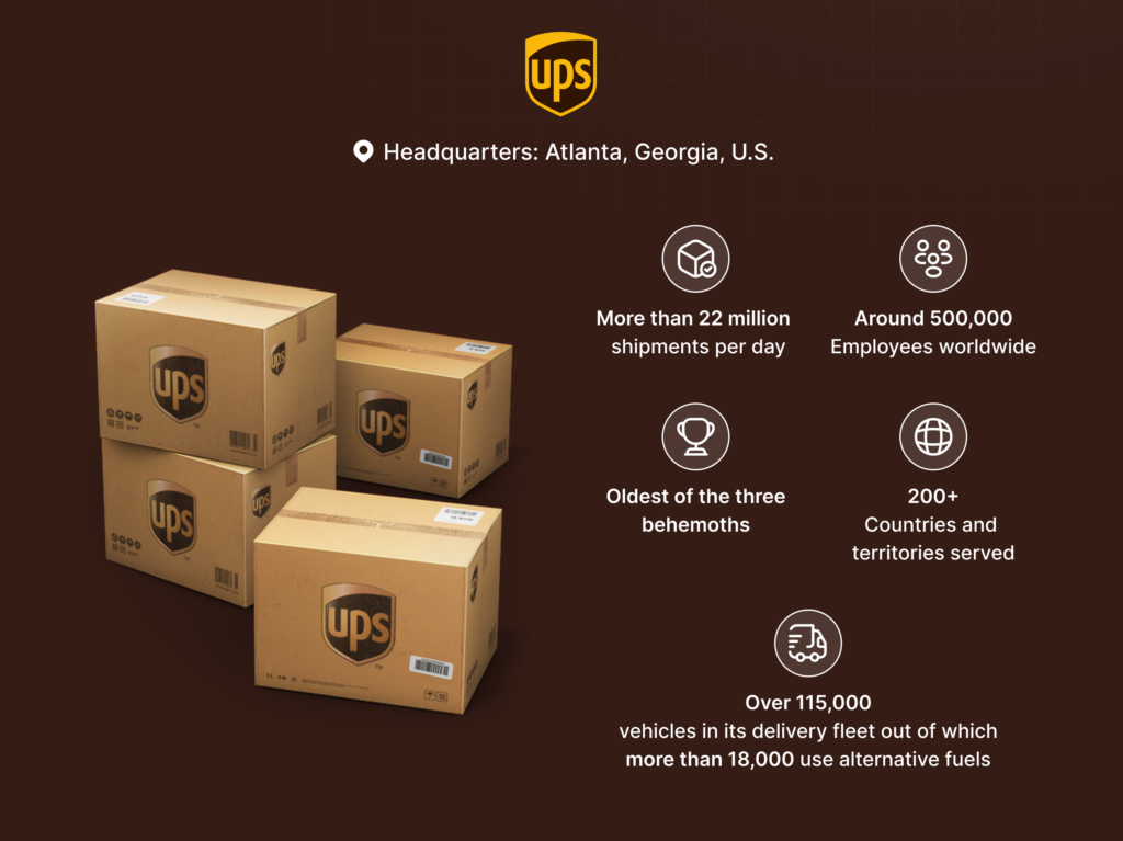employees, services across 200+ countries & territories, 22M+ daily delivered packages, and a revenue of $91B (in 2023).
