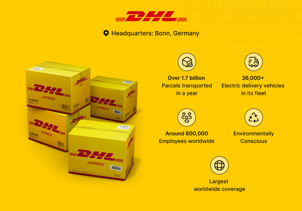 As of today, DHL is the world’s leading logistics company, with close to 600,000 employees and a reach of over 200 countries. In 2023, DHL generated a revenue of € 81,8 billion, equivalent to $103.86 billion.