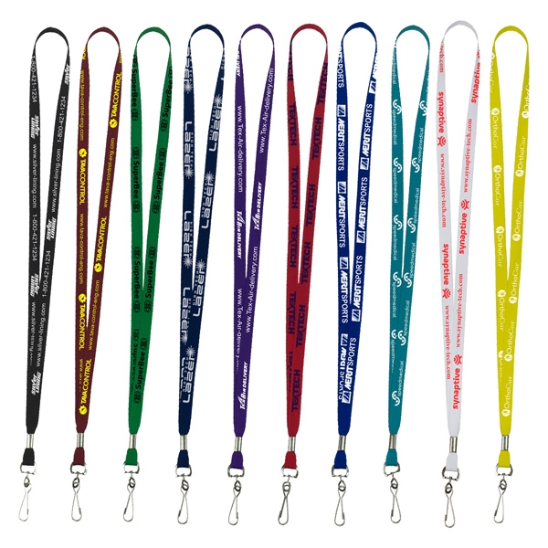 Don't be left hanging-- these custom lanyards will promote your brand fast! Offered in an assortment of great colors, these lanyards measure 18" x 1/2" and are made of super-soft polyester. Each one can be customized with a one color continuous step and repeat imprint on the front (left and right) side. Perfect for tradeshows, conventions, conferences and any other promotional event! -
